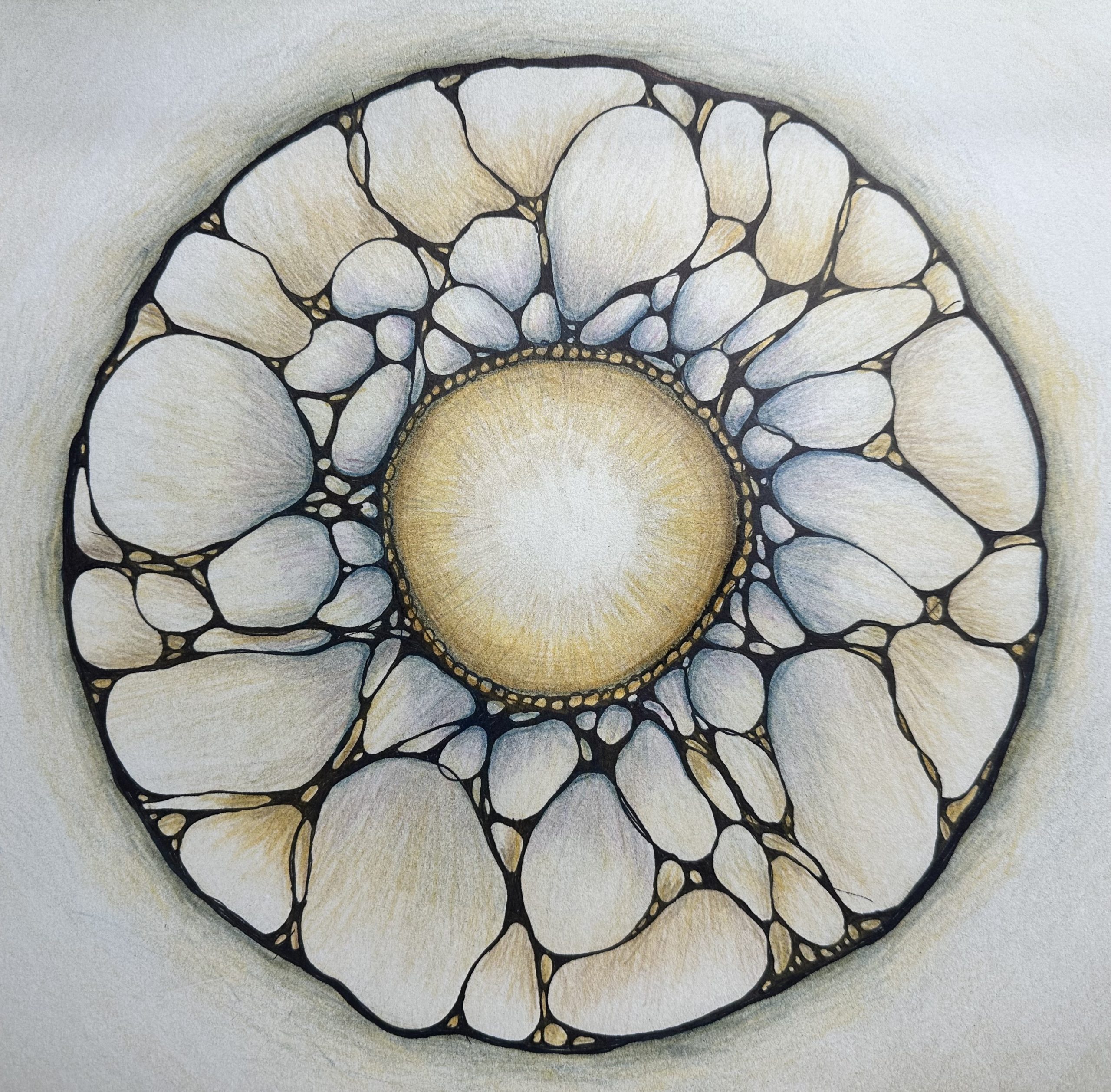The circular mandala structure creates a sense of emotional holding. Circles are inherently calming to the nervous system, offering a visual and felt sense of safety, boundary, and containment. The act of drawing within a circular form helps reduce overwhelm, gently anchoring attention and emotion within a defined, supportive space.